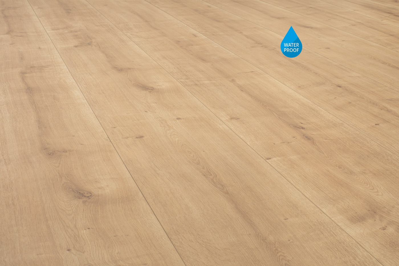 De 32 cm brede vloer planken hebben een sfeervol eiken design en zijn geschikt voor het leggen op een vloerverwarming! De Landhuis planken hebben een luxe V-groef aan de lange zijde die het extra brede formaat nog eens benadrukt. De vloer beschikt overigens over een doorlopend patroon, wat zorgt voor eindeloos lange banen. Daarnaast is de collectie tot in de groef waterproof. De groeven hebben een speciale ‘watervast’ coating gekregen waardoor de Floer tot 4 uur waterbestendig is.