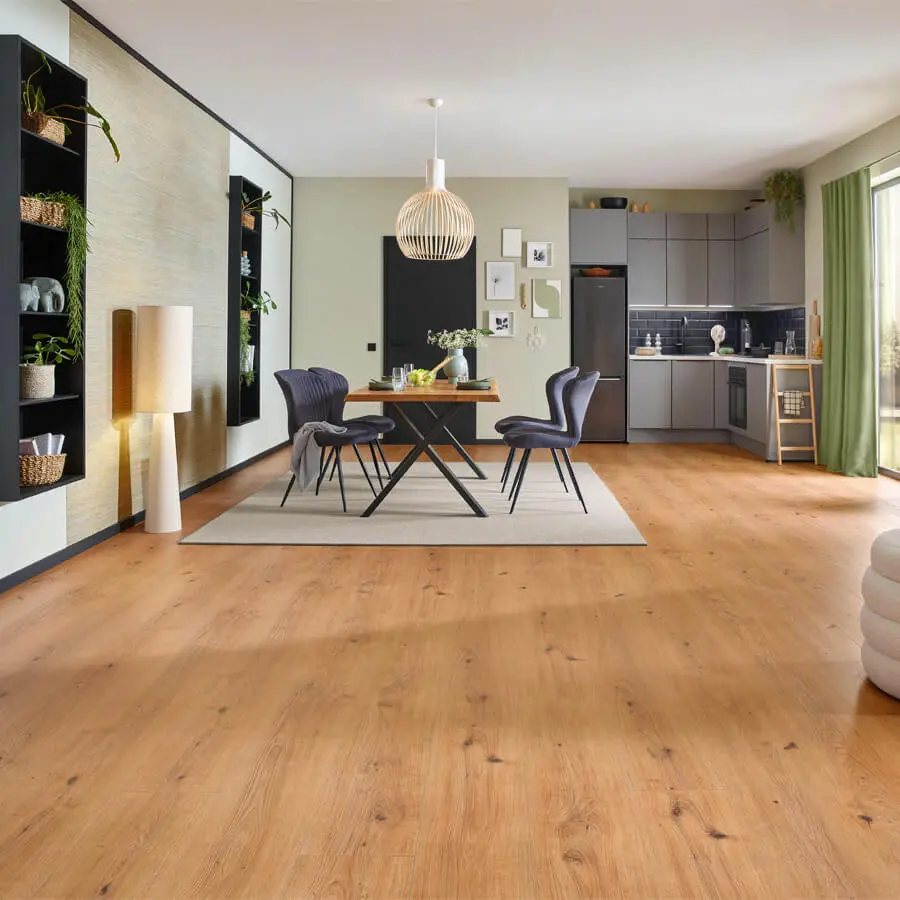 Vochtbestendigheid: Deze vloer is  AQUA+, wat betekent dat ze waterbestendig zijn (tot 24 uur) en daardoor ook geschikt voor gebruik in vochtige ruimtes zoals keukens of badkamers.