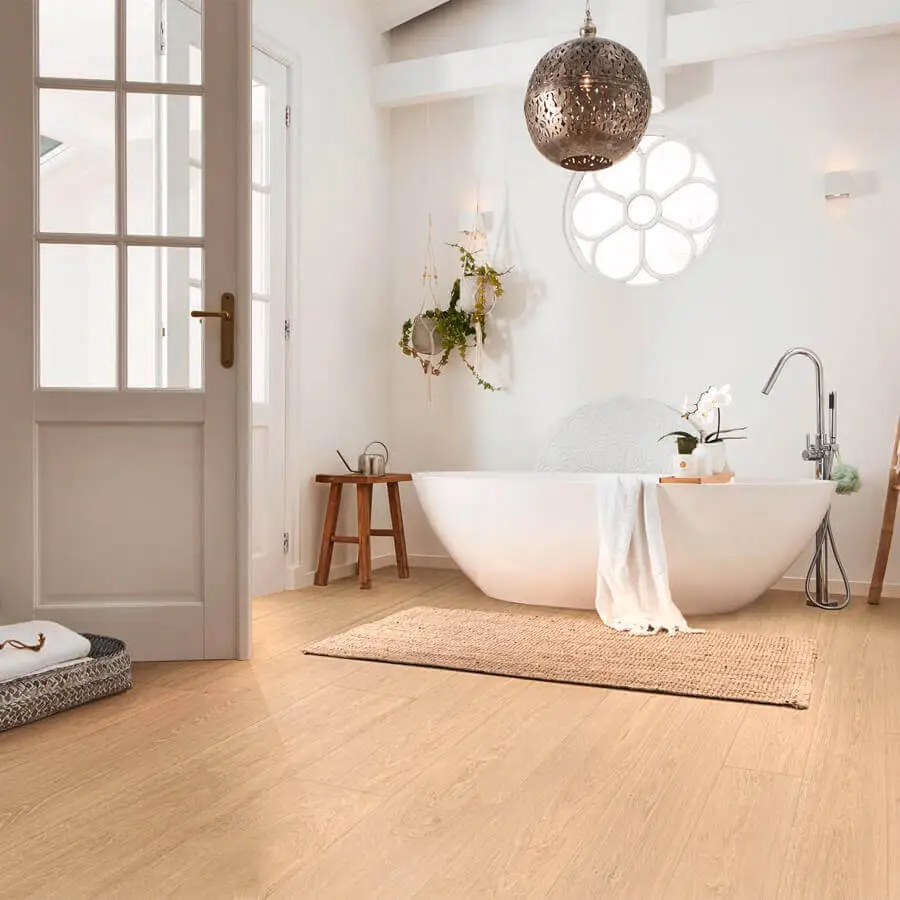 • 24 uur waterbestendig: Dankzij het AquaSafe+ systeem en de AquaStop randimpregnering is de vloer tot 24 uur beschermd tegen binnendringend vocht. Dit maakt hem geschikt voor keukens en badkamers (mits goed afgekit).