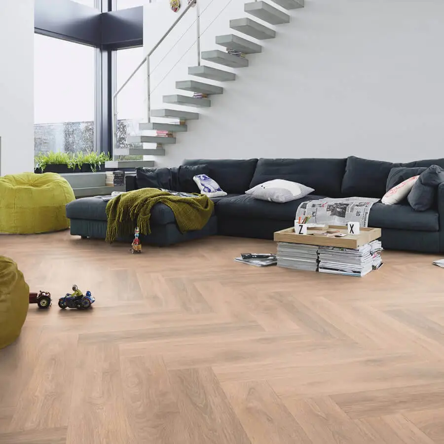 Antistatisch, watervast en absoluut ongevoelig voor krassen. MeisterDesign laminate LS 350 Visgraat is de slimme laminaatvloer voor alle toepassingen.  Het markante planken-formaat zorgt voor een heel bijzondere uitstraling, zeker binnen een moderne woonomgeving.