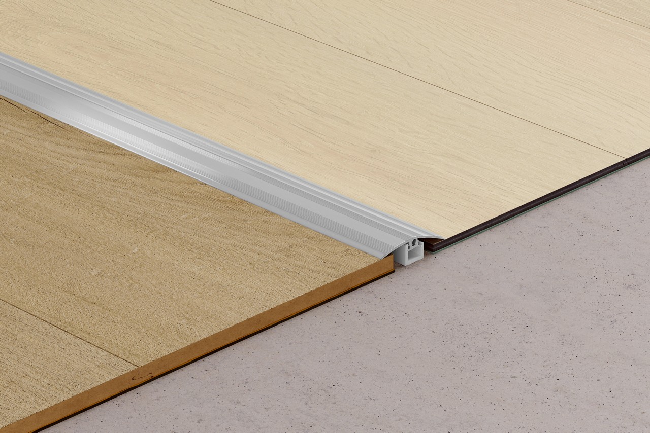 Met het supersterke aluminium Quick-Step Multifunctional profiel kun je meerdere hoogteverschillen overbruggen of je Quick-Step PVC vloer naadloos laten aansluiten op een ander type vloer. Overbrugt hoogteverschillen tot 12,3 mm en kan als aanpassings- of uitzettingsprofiel worden gebruikt.
